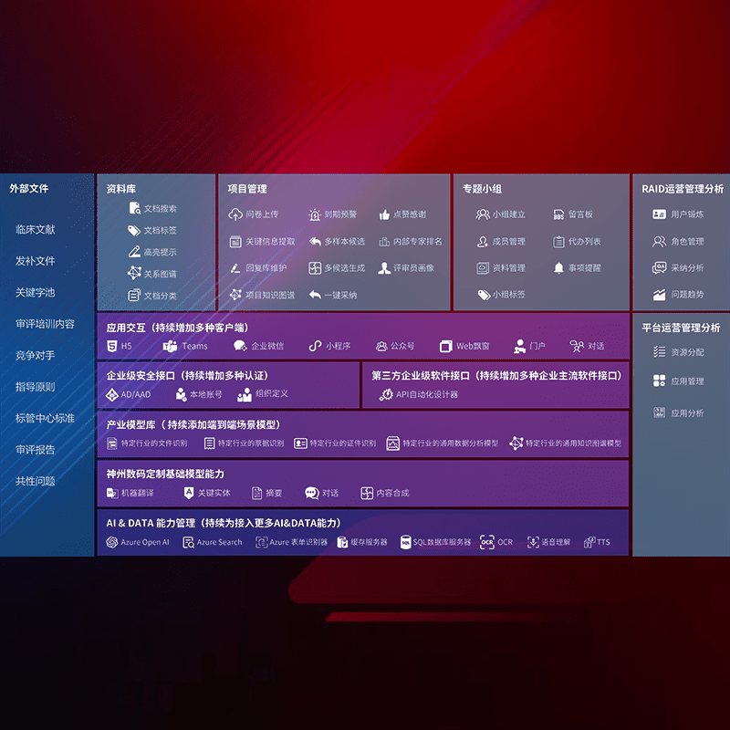 医疗器械产品上市前,,,要熟悉严格与繁复评审标准,,,,整理分析监管机构指导文件中的海量信息。。。企业急需一个智能化解决方案,,,,提升知识管理效率,,,提高评审通过率,,,以提升其市场竞争力。。